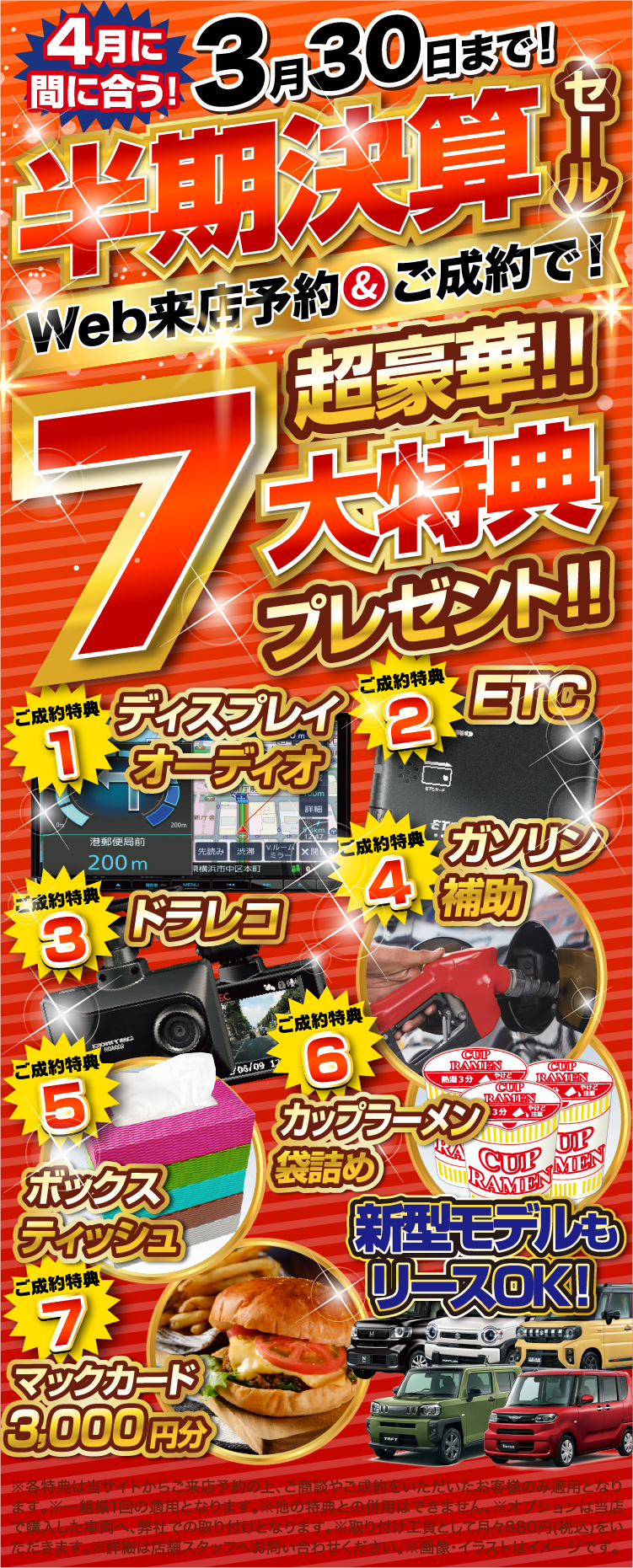 - 残価を高く設定!自社で中古販売も行っているため、7年後のお車を高く買い取れます!