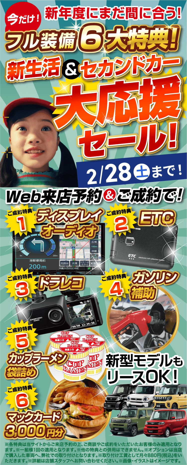 - 残価を高く設定!自社で中古販売も行っているため、7年後のお車を高く買い取れます!